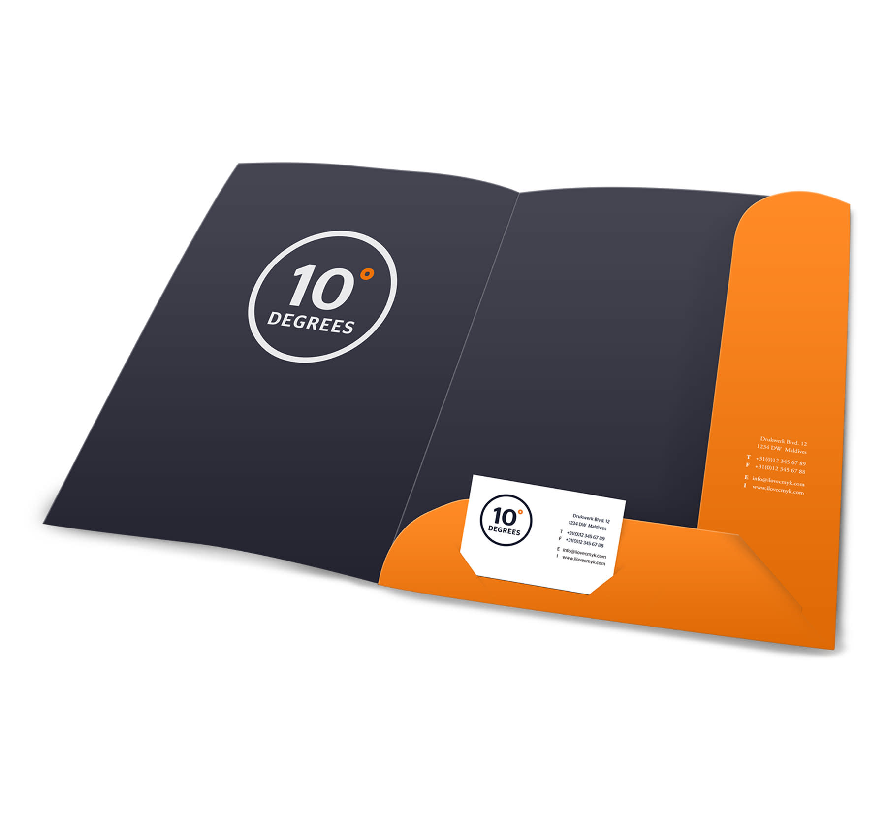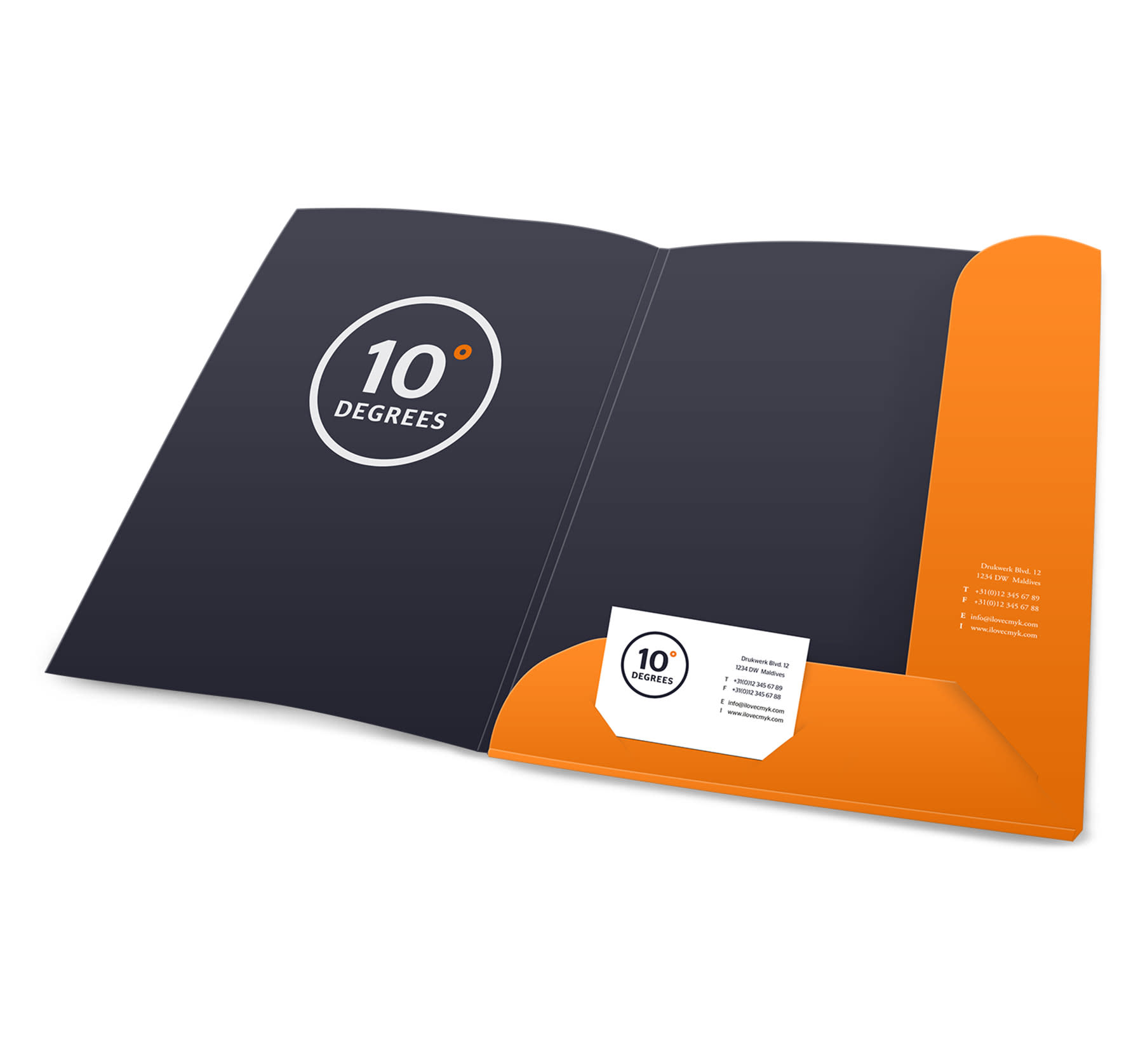Een sterke offerte verdient een sterke presentatie. Laat offertemappen drukken en geef jouw documenten een professionele, overtuigende uitstraling. Met jouw logo, huisstijl en contactgegevens op de map maak je direct indruk, nog vóór de offerte gelezen is.