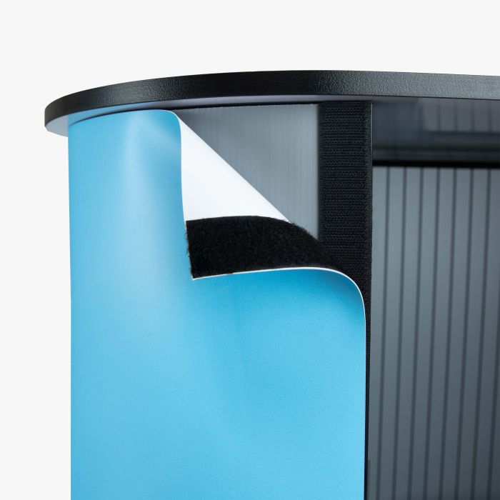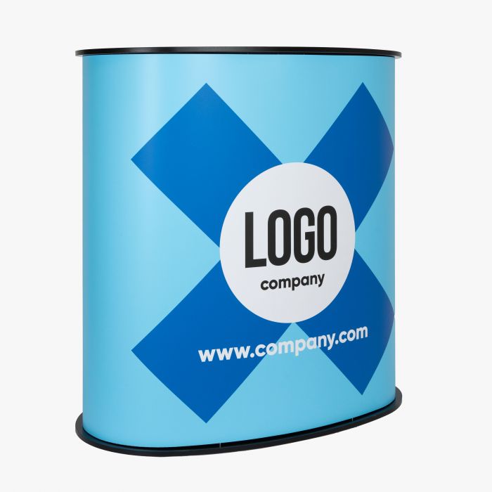 Op zoek naar een compacte en representatieve tafel-oplossing die direct een professionele indruk maakt? De Kidney Balie is perfect voor beurzen, promoties, events of ontvangstbalies. Dankzij de elegante, kidney‑vorm oogt je presentatie vriendelijk, toegankelijk en visueel aantrekkelijk. Je hebt de keuze uit twee hoogwaardige materialen voor de bodyprint. Beide opties zijn licht van gewicht, opvouwbaar en eenvoudig te wisselen. Het boven- en onderblad van de balie zijn gemaakt van 16 mm gelamineerd MDF, wat zorgt voor stabiliteit en een hoogwaardige uitstraling.